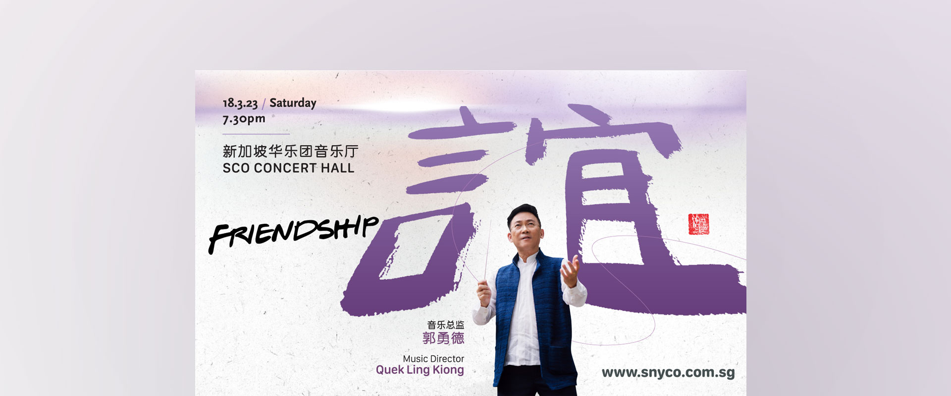 In addition, the SNYCO team has also specially commissioned Lee Jun Le (李俊乐), a talented young boy to pen the calligraphic form of the 4 Chinese characters of the concert “Friendship” (谊), “Reunion” (聚), Legacy” (承) and “Ascend” (腾).
