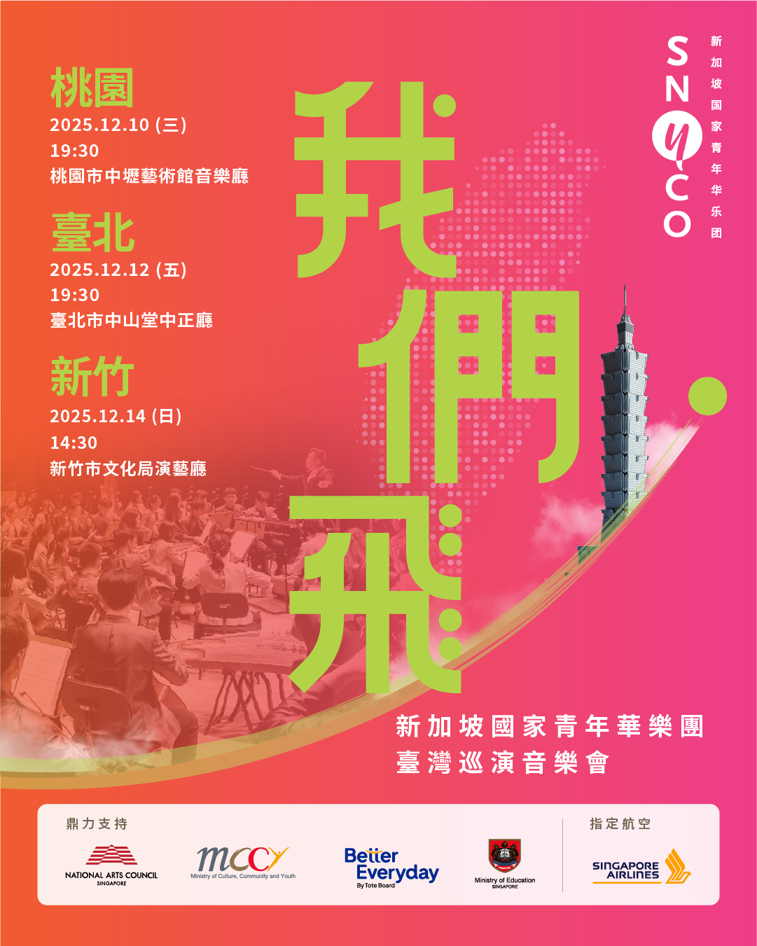In December 2025, the Singapore National Youth Chinese Orchestra (SNYCO) will embark on a nine-day cultural and musical journey across three cities in Taiwan — Taoyuan, Taipei, and Hsinchu. This tour not only showcases the musical excellence and dedication of Singapore’s young musicians, but also fosters meaningful cross-cultural dialogue through the universal language of music. Before setting off, SNYCO will present a pre-tour concert on 6 Dec 2025, offering local audiences an exciting preview of the performances to come, while marking the opening of Concert Season 25/26.