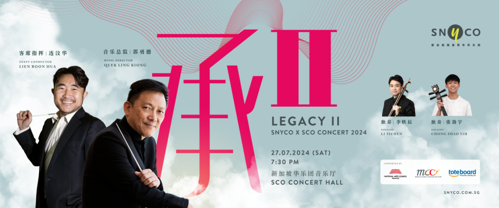 Singapore, 2 July 2024 (Tuesday) – The Singapore National Youth Chinese Orchestra (SNYCO) and the Singapore Chinese Orchestra (SCO) will present their annual joint concert “Legacy II” on July 27, 2024 (Saturday) at 7:30 PM at the SCO Concert Hall, showcasing the boundless possibilities of music and the cross-generational transmission of culture.
