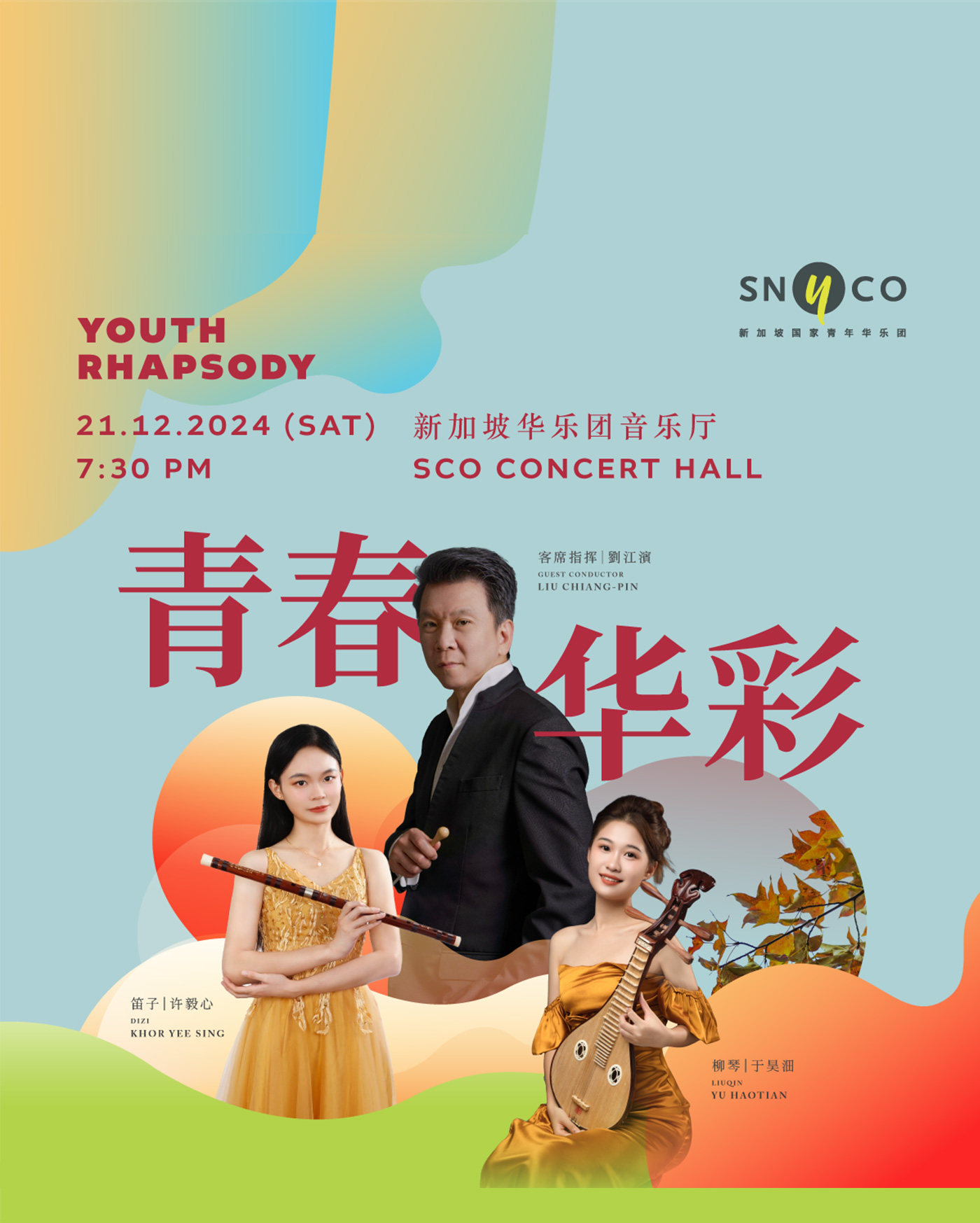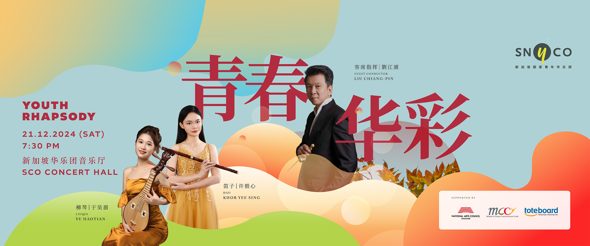 加入新加坡国家青年华乐团与劉江濱共赴“青春华彩”的音乐之约!由现任新竹青年国乐团、新竹青少年国乐团艺术总监劉江濱策划和指挥,带领青年团员呈献多首大师名作。