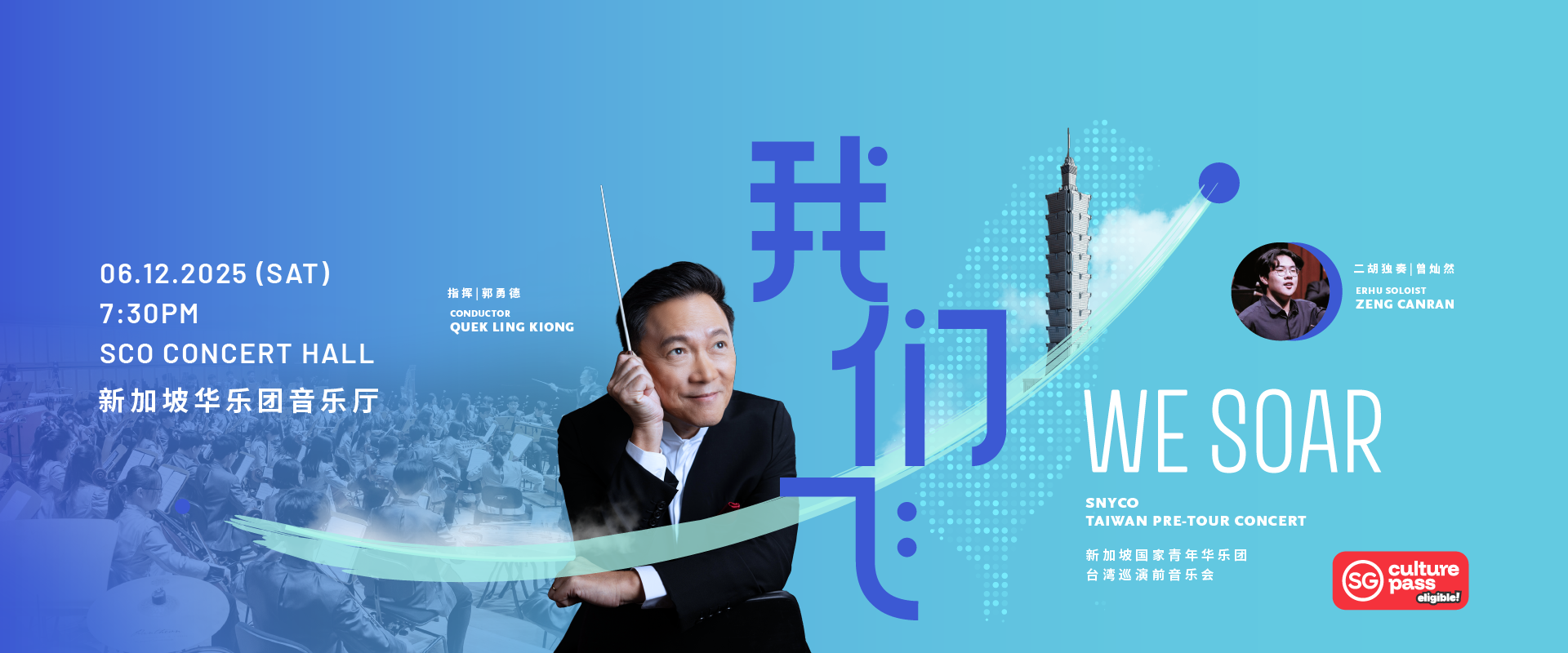 新加坡国家青年华乐团将于12月6日在新加坡华乐团音乐厅呈献“我们飞”——赴台巡演前的特别预演音乐会。乐团将于12月9日至17日,前往桃园、台北与新竹三地演出,并与当地青年华乐团交流同台,展现新加坡青年华乐人的实力与风采。